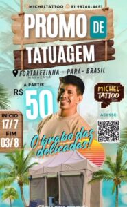 Michel chamou a aventura que conecta trabalho e diversão no “Projeto Itinerante julho 2025 Fortalezinha-PA“, foi uma oportunidade para Michel Botelho compartilhar sua arte e criatividade com a comunidade local e os milhares de turistas que frequentam a ilha. Com suas habilidades excepcionais em tatuagem, ele criou obras de arte únicas e personalizadas.