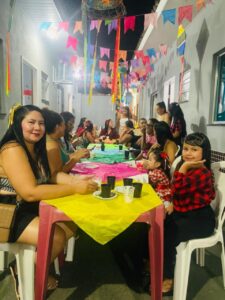 Durante o evento, os participantes puderam desfrutar de comidas típicas, além de participar de sorteios e jogos de bingo com diversas premiações. A atmosfera foi de pura alegria, com sorrisos e risadas compartilhados entre amigos e vizinhos, na essência da verdadeira comemoração de São João.