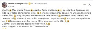 O professor e ex-vereador Raimundo Venâncio, o “Mundinho” se manifestou nas redes sociais: “Mais um dos nossos amigos foi morar na sua morada eterna, a morte é o último ato do nosso tempo na terra, porque ela teria tantas coisas a nós ensinar sobre a vida.