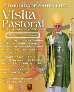 Às 8h, será servido um café da manhã seguido da abertura da Visita Pastoral na Capela de Santa Luzia. Durante a manhã, Dom Carlos visitará as comunidades do Setor São Miguel, levando palavras de encorajamento e orientação espiritual.