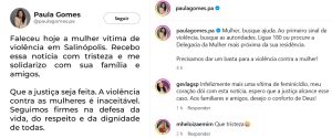 A Secretária Estadual da Mulher, Paula Gomes, que é natural de Salinópolis se manifestou sobre o caso em suas redes sociais e alertou para a necessidade do pedido de ajudar sempre.