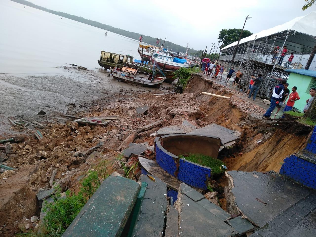 O Corpo de Bombeiros Militar do Pará já fez o isolamento preventivo de quase 60 metros da orla na sede do município de Vigia de Nazaré, na região nordeste, onde a força da maré e a chuva intensa provocaram o desmoronamento de cerca de 20 metros, por volta de 8 h desta terça-feira (26). Segundo o tenente-coronel Albuquerque, comandante do 17° Grupamento Bombeiro Militar, as providências já foram tomadas para evitar acidentes com transeuntes, incluindo a retirada das estruturas de camarote, o que acarretará o estreitamento da via pública, mas sem comprometer a segurança dos foliões. A parte do cais de arrimo que cedeu fica em frente à Igreja de Pedra, uma das atrações turísticas do município.