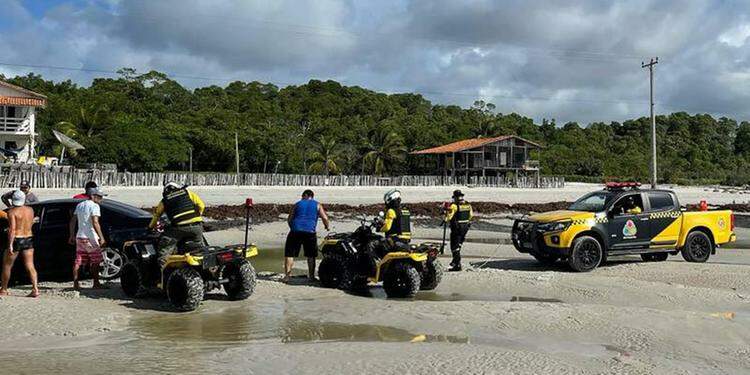 No ícone da imagem, que viralizou nas redes sociais, é possível ver um veículo atolado na areia sendo ‘puxado’ por pessoas que estão na praia. Confira:
