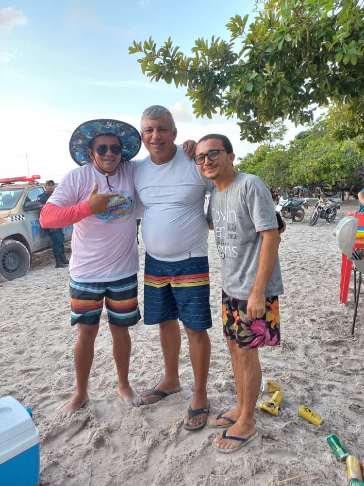 Izaque Machado, prefeito Reginaldo e Jorge Negrão na praia do Penha, Maracanã